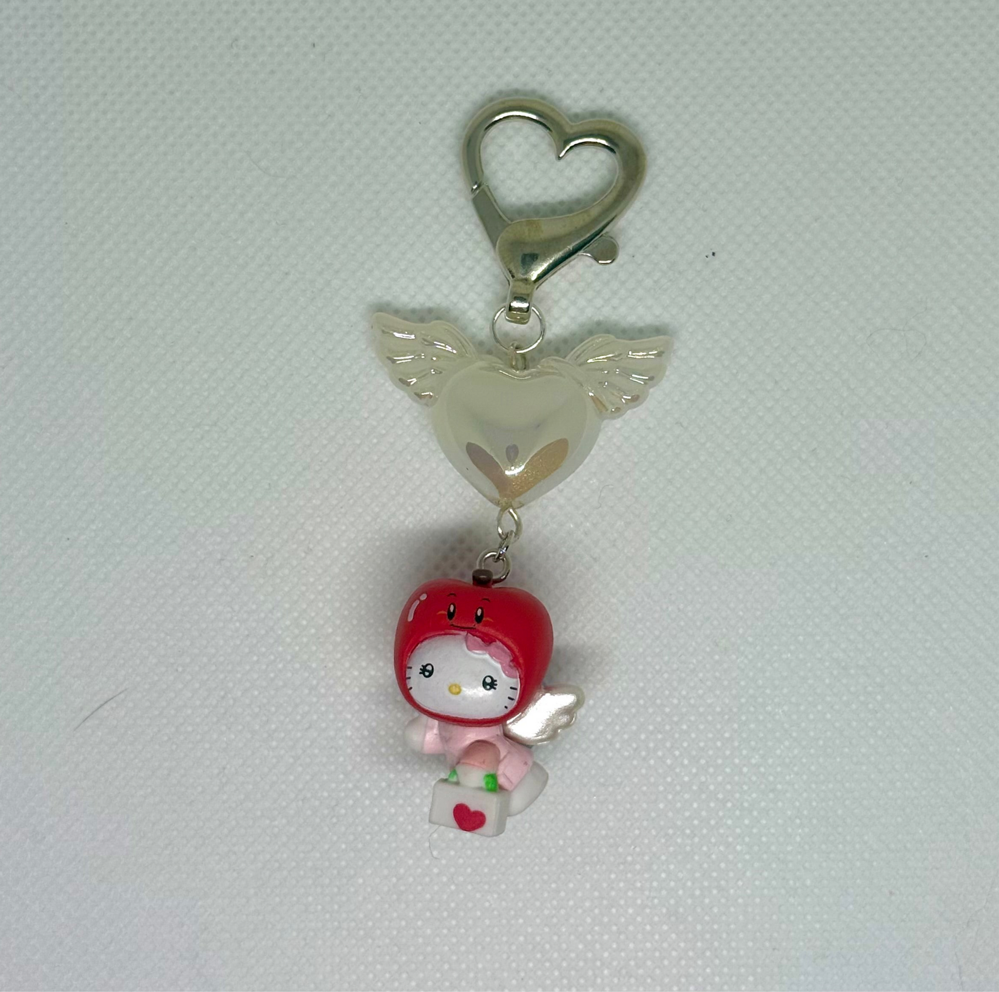 handmade bag charm / keychain featuring a silver heart clasp keyring