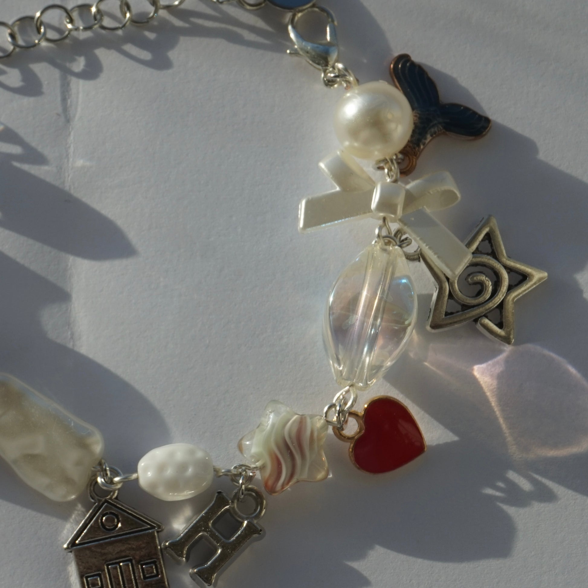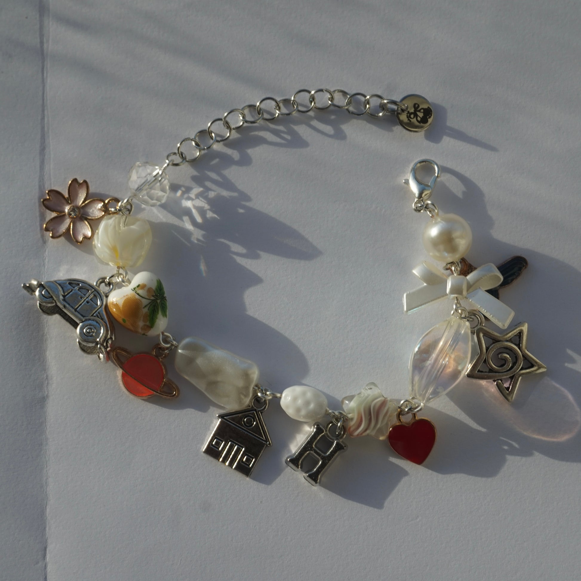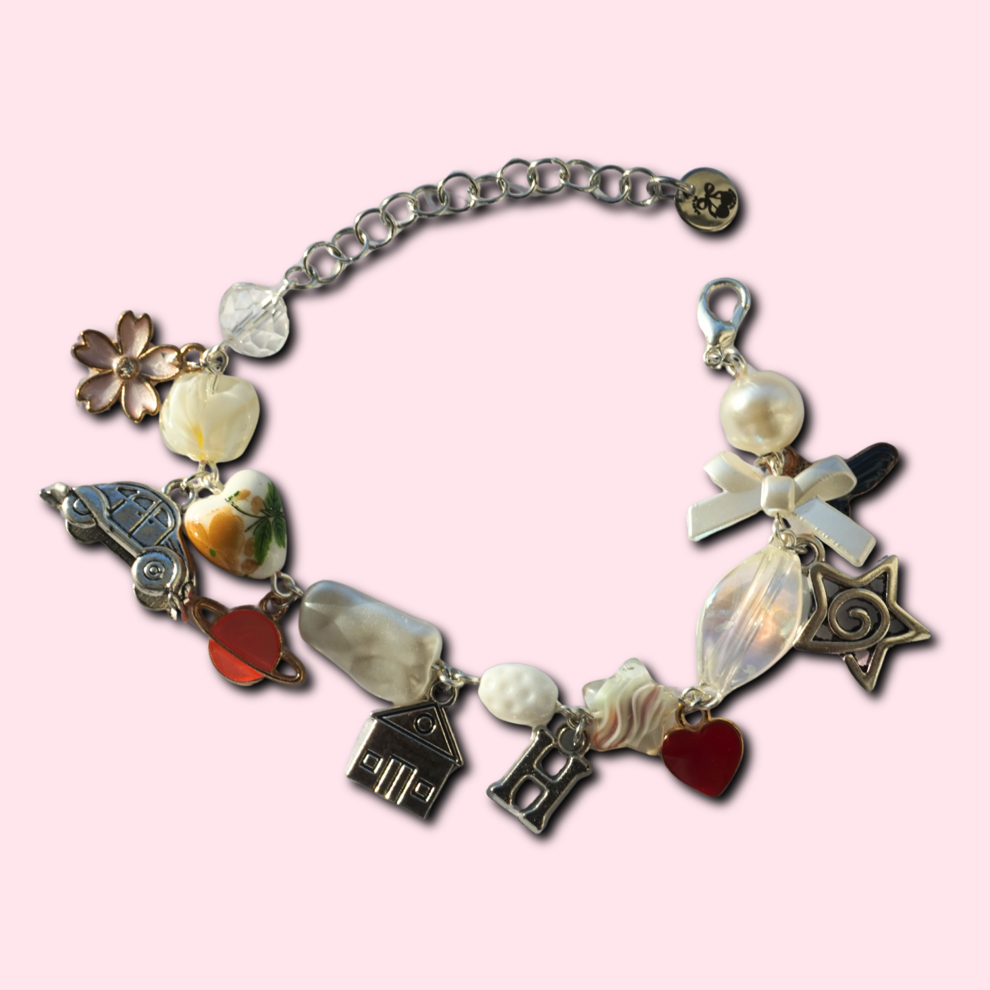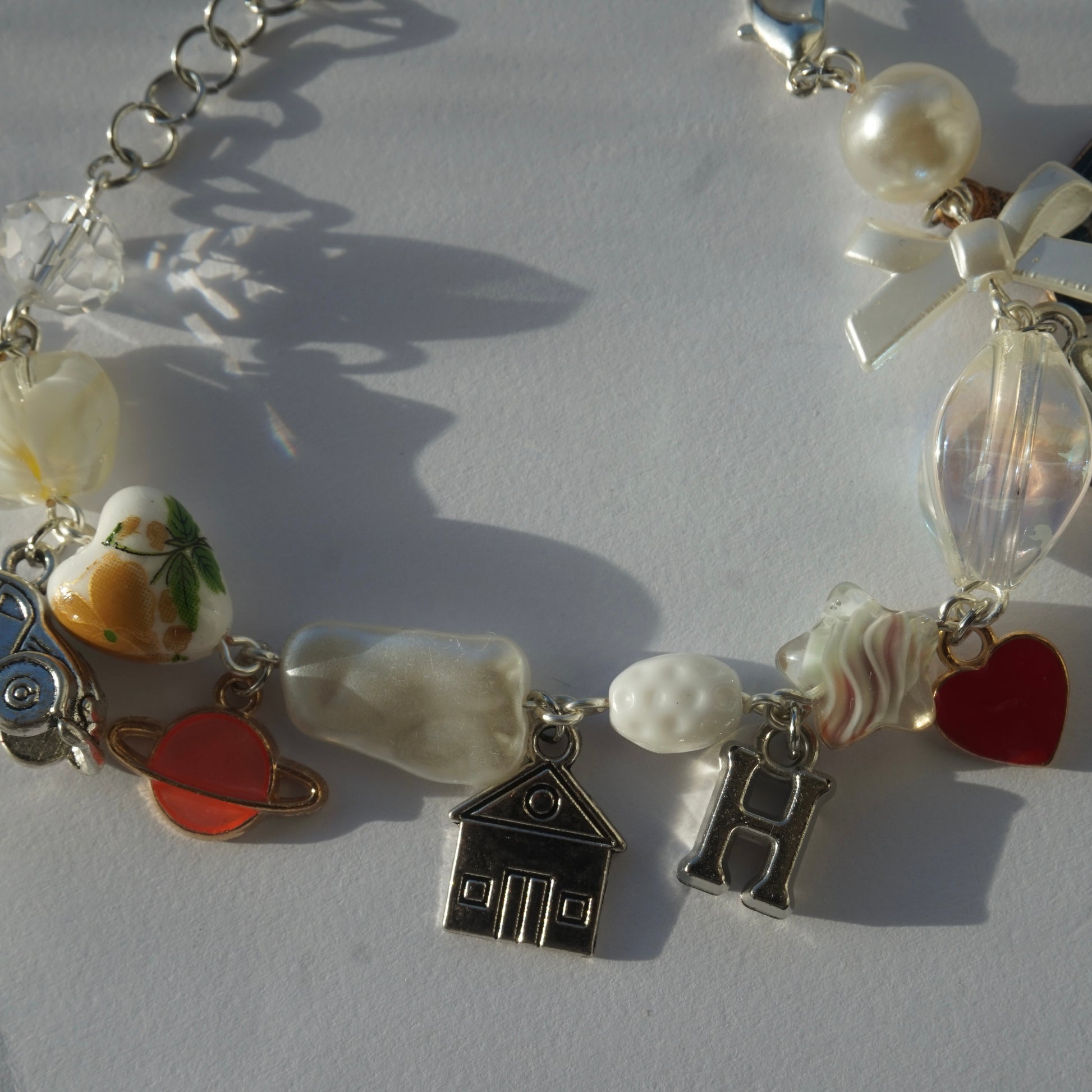 beaded charm bracelet inspired by harry’s house! with charms that each represent a different song from the album <3